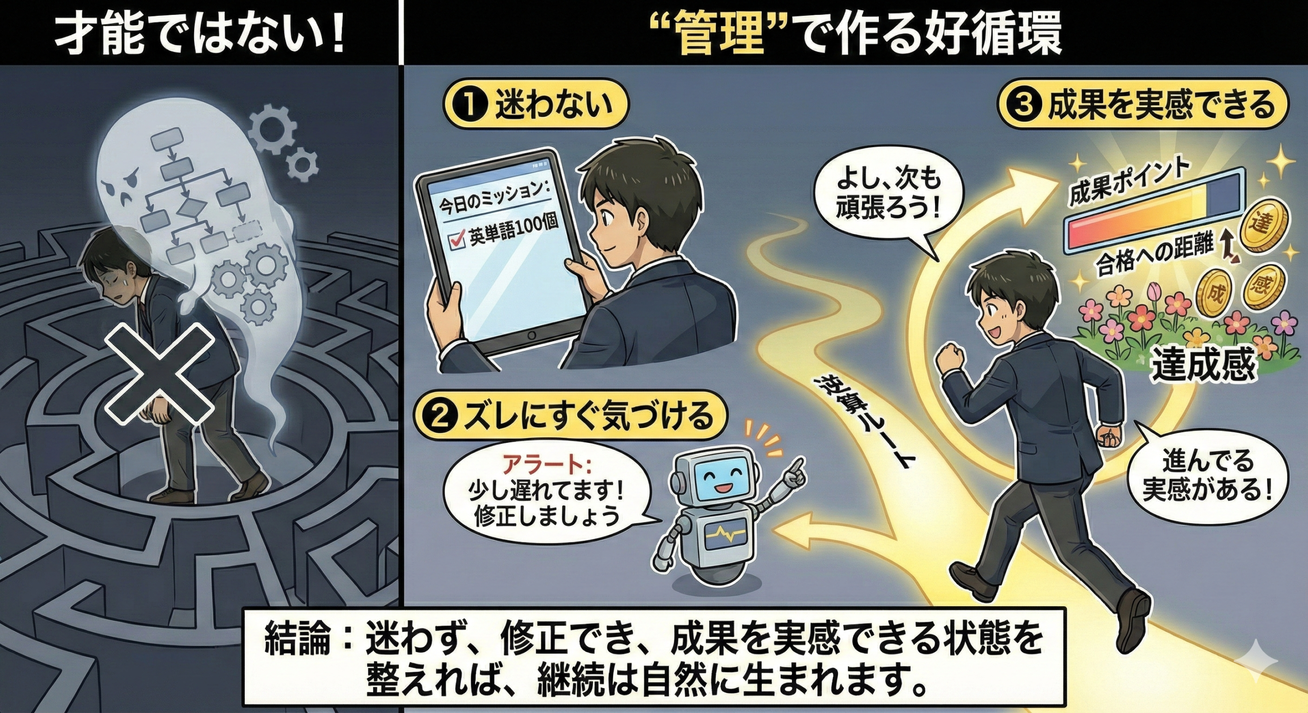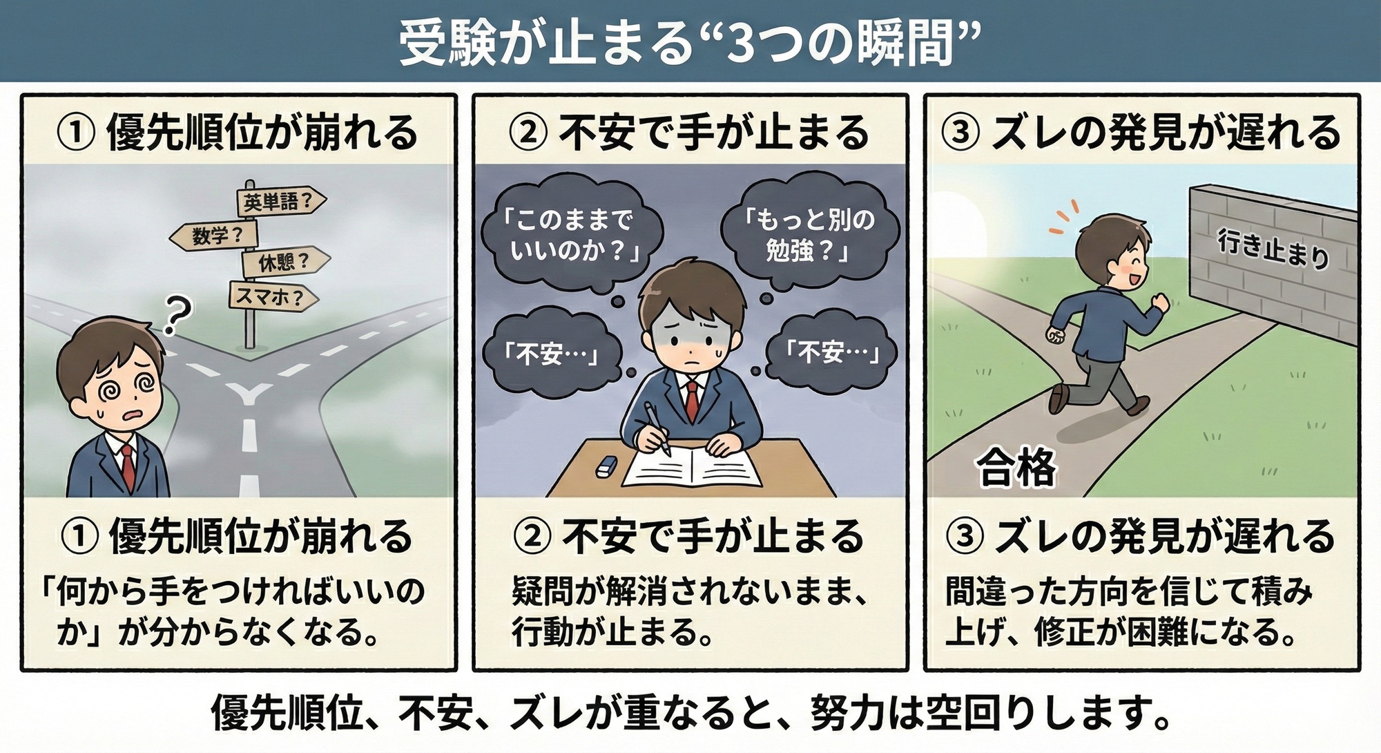 👉 合格までの道のりは、人によって違うからこそ、設計が必要です。