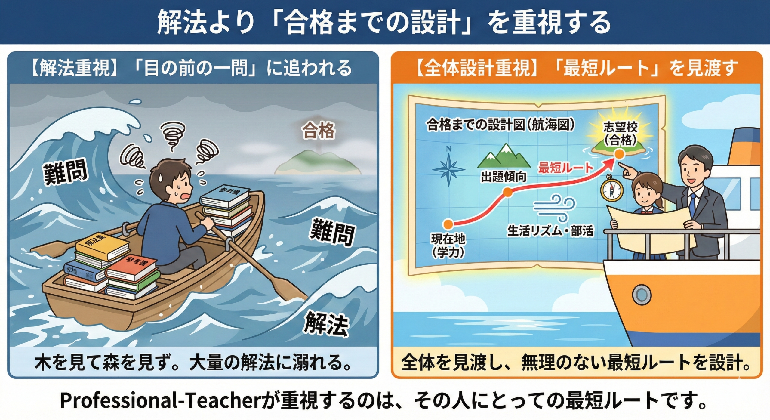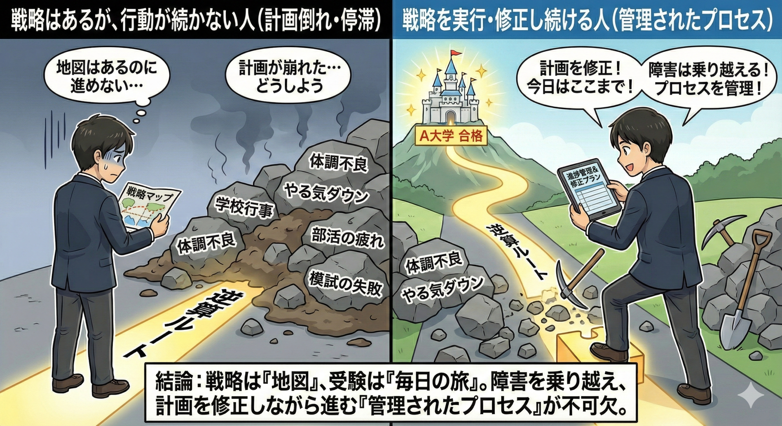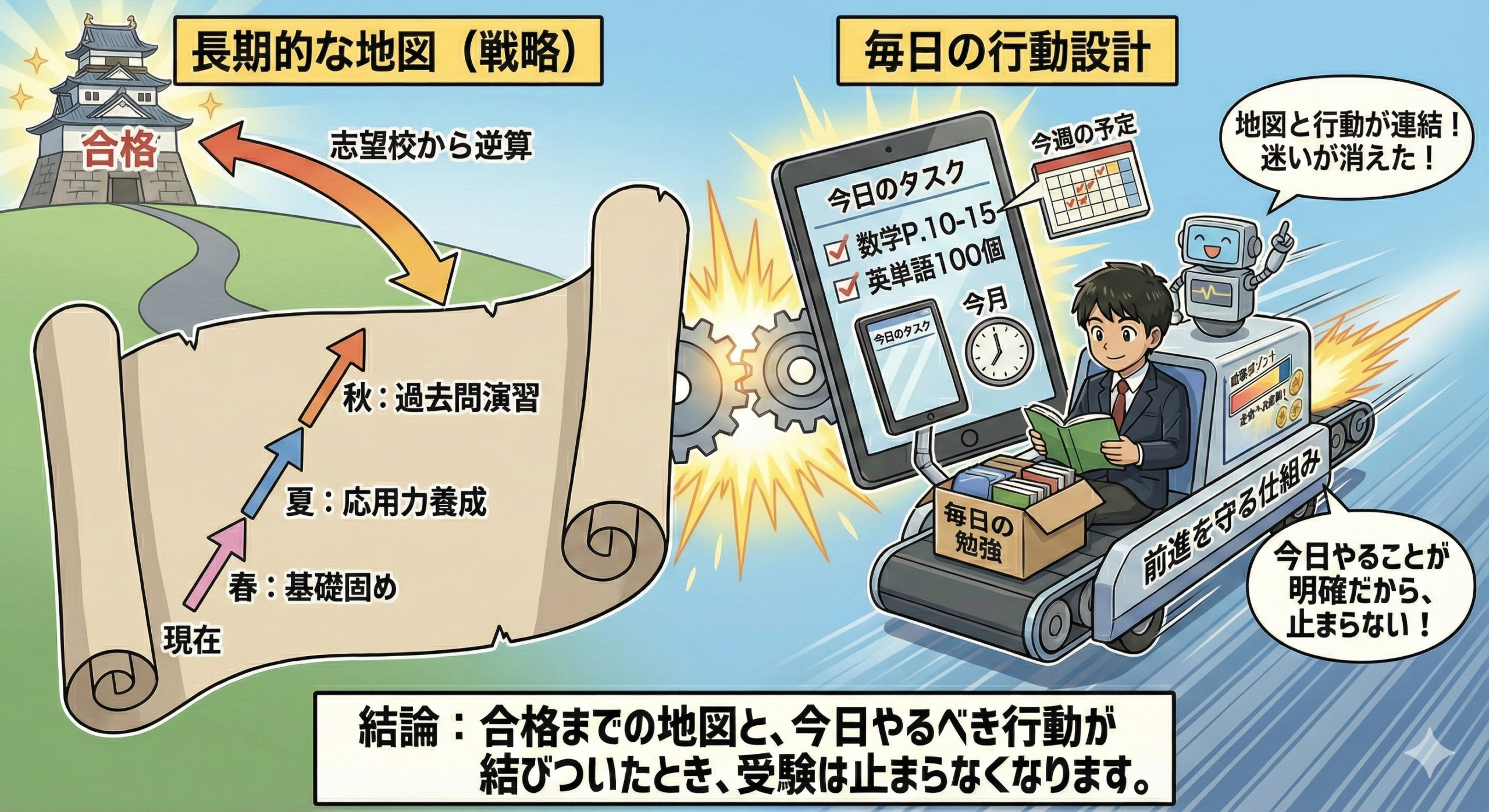 「志望校別の地図」と「毎日の行動」をセットで設計し、